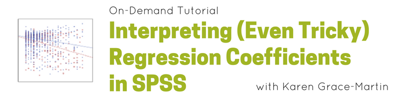 I’m Karen Grace-Martin, your instructor for Interpreting (Even Tricky) Regression Coefficients in SPSS.